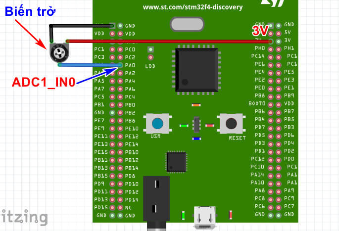 Đọc giá trị biến trở là ví dụ tiếp theo trong STM32 cơ bản. Ví dụ trước ta đã tìm hiểu về PWM Input capture. Trong ví dụ này ta sẽ đọc giá trị của biến trở bằng chức năng  ADC (Analog-to-Digital Converter).